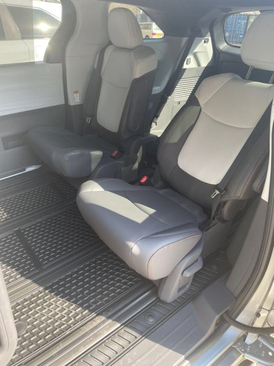 丰田塞纳内部空间非常大,充分发挥了MPV的优势。 座椅全部采用双色真皮,第二排座椅的腿部支撑,放倒第三排座椅,加上腿部支撑,完全变成了两张摇篮床,让长途旅行多了一份舒适。宽敞舒适后座空间,配上该车安全稳定的行驶系统,保证途中也能舒适地谈上生意。