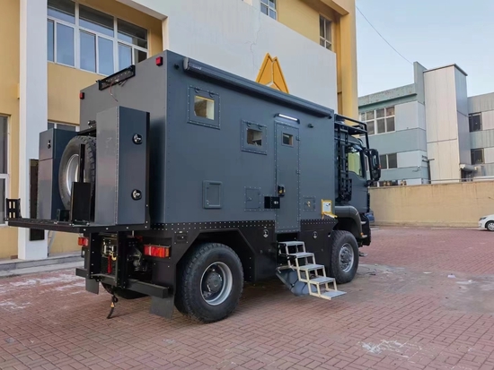 四驱豪沃房车两驱汕德卡房车最新价格,新重汽曼恩4×4重型越野房车基于重汽豪沃TX 4×4底盘打造,车身尺寸为5995×2550×3600(mm),轴距3600mm,整备质量12200kg,最大总质量13000kg,油箱容积为400L,可轻松续航1800公里;车身采用德国曼TGA柔性车架,箱体为热断桥硬化铝骨架六层加强保温结构,厚度为60mm,耐零下30度低温。越野专用方舱造型,三点悬浮设计,保证车厢稳定性的同时也防止意外变形,地板及家具异响,极大延长箱体使用寿命。底盘方面,前后悬挂采用前后专用板簧+液压筒式减震器的组合形式,其作用可过滤行驶途中的颠簸感也保证了舒适性;三把差速锁也让它对于任何路况都可从容不迫的通过,提升了户外越野的生存性。轮胎规格为425/65 R22.5。