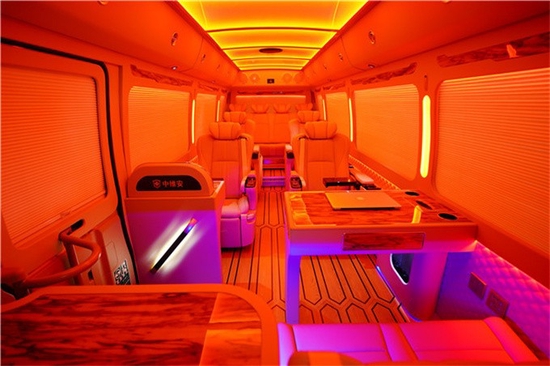 丰田考斯特米黄金的色彩加上跳跃型的彩色不会显示出单调之感,同样高大的车身增加细节之处的色彩搭配使得丰田考斯特改装商务车不会因其高大而显得笨拙。同时丰田考斯特改装商务车增加了电动台阶的设计,方便老人上下车的需要。在内饰的设计上丰田考斯特改装商务车注重舒适性和实用性的完美结合丰田考斯特改装商务车在内饰的改装上丰田考斯特改装增加隔断设置,在驾驶席与乘客席之间增加隔断,一方面可以给驾驶人员一个安静的环境,注意力集中,保障行车中的安全。