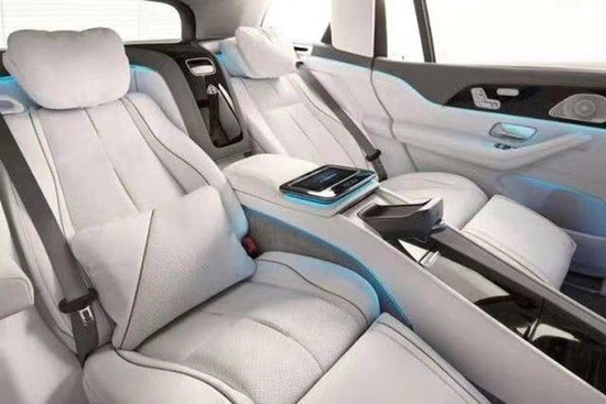 梅赛德斯-梅巴赫的内部使用慷慨的尺寸,为司机和乘客提供舒适和宽敞的座位。内部被设计成一个感觉良好的区域。尤其是后排车厢,其后排座位比奔驰GLS车的后座还要远120毫米,它既是办公室,也是私人休闲区。带小腿支撑的外后座和极宽的靠背,可以向后倾斜43.5°,是长途旅行中深度放松的理想选择,甚至是恢复能量小睡的理想选择。