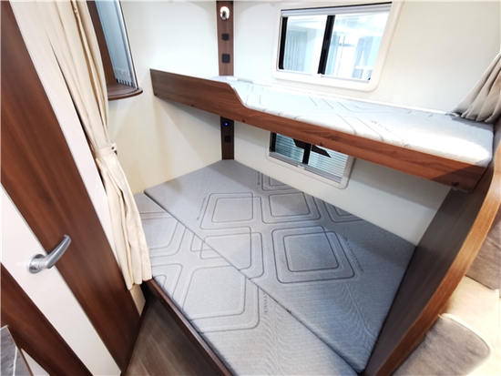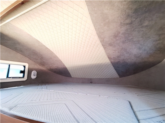 车辆双人尺寸额头床的设计同常见的车型不同,床铺没有采用向上的折叠式,而是改用抽拉式,24寸的壁挂式电视(配先锋音响系统)改在了车辆中门上方。如果有需要,也可选装投影电视和富声音响系统,打造车内移动影院