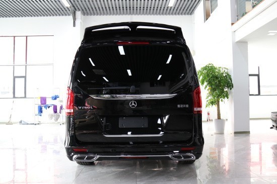 奔驰V260L乘客舱配有双侧电动滑门,可通过遥控智能钥匙远程进行控制,或使用B柱内部的黑色按钮关闭。为了最大限度的方便乘客出入车厢,滑门可以停留在任何位置,贴心的防夹保护功能则能避免了可能发生的意外。奔驰全新V级尾部整体设计方正,在后挡风玻璃以及牌照架处使用了少量倾斜线条,增加了活力。奔驰V260L改装红钻版座椅人体工程学设计,带有一键式展开及记忆功能,并配备加热、通风、气动按摩、一键式伸缩腿托功能,带来头等舱级舒适体验巧夺空间,私家客厅级后舱体验,隐藏式空间优化独立座椅,二排座椅可在吧台与独立座椅间一键切换,充分释放后舱空间,带来客厅级舒适享受。