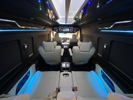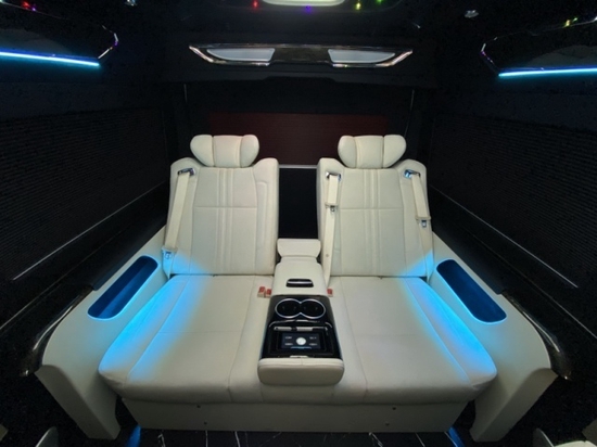 2022款丰田海狮9座商务车采用2+2+2+3四排九座的设计,第二排和第三排均配备了两个Ottoman航空座椅,第三排放一张三人座的沙发床,即宽敞又实用,这样的情况下后备箱还能垂直放下四套高尔夫球装备!空间大才是真的王道。 华通丰业除了空间优势外,豪华性方面真皮、木质以及烤漆饰板的加入使得新车的内饰更具豪华度,车顶的设计时尚、大气,装彩色航空顶灯,星空顶,流水灯充满着奢靡的味道,点亮后车内的氛围是其它商务车所不能比拟的,也是的丰田海狮在内饰的环境上展现出与众不同的色彩,家庭出游必备首选。