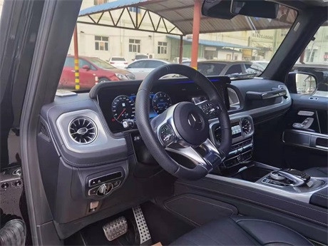 20款奔驰G63 AMG豪华精致的真皮包覆提供了足够的舒适性和支撑性,通风和加热功能让乘客免受高温和寒冷的煎熬。中控台多处均采用碳纤维材料覆盖,带彩色TFT显示屏的AMG仪表盘、AMG主菜单和单独的挡位显示器以及采用白色照明的AMG门槛。名贵的选材及精湛的内装令人拍案叫绝。