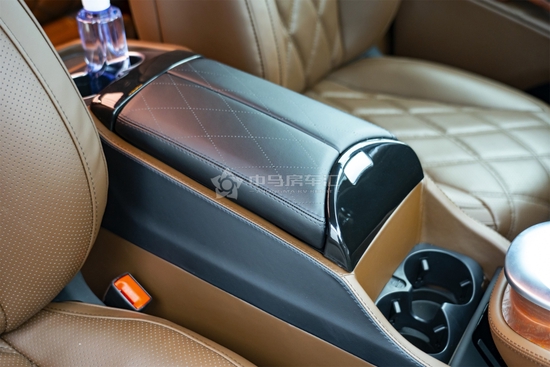 奔驰VST880在棕色的皮质色彩搭配下,坐在第二排的豪华头等舱座椅之上,让尊贵的老板时刻保持一个轻松愉悦的心情,二排小桌板、后排娱乐、无线充电、脚踏也都一一配置