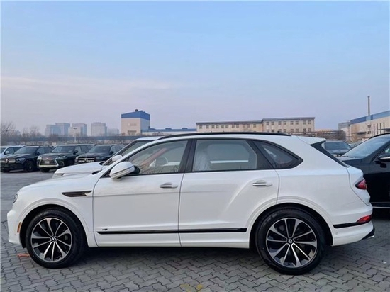 21款宾利添越车身侧面的运动气息。倾斜式后窗使得其具有了更加优雅的造型,而前后腰线的独特设计又赋予了它更强的力量感。虽然此款车型有着接两米的宽度和超过5米的长度,但是看上去一点也不显得很笨重。