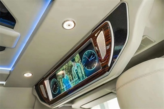 这台海狮整车升级了加强型的隔音隔热处理,车内带空气净化系统,无线充电系统。在进门侧加装了氧化铝脚踏带迎宾灯的,整车都是采用纳帕级皮质进行包覆的,侧壁红木装饰,手动百褶窗帘,后舱暖风系统,最后说说棚顶灯光,这个有智能触摸控制系统,灯光超级棒。后排乘坐舱采用DVD智能24寸显示器、卡拉OK系统、折叠桌、内饰把手实木、空调出风口实木、全皮软包内饰顶棚、两侧航空灯、两侧窗帘、两侧装饰框及中门尾门、全新设计艺术办公桌(纸巾盒、杯架、抽屉)、220V电源、四张埃尔法样式航空座椅电动前后、电动靠背、脚托、加热、按摩、通风、模具塑料真皮扶手(镶嵌实木装饰)、艺术定制地板、两侧饰板软包、车内两侧饰板加装隔音隔热棉及止震垫等设备,无一不是让我们有更为舒适的乘坐感受。