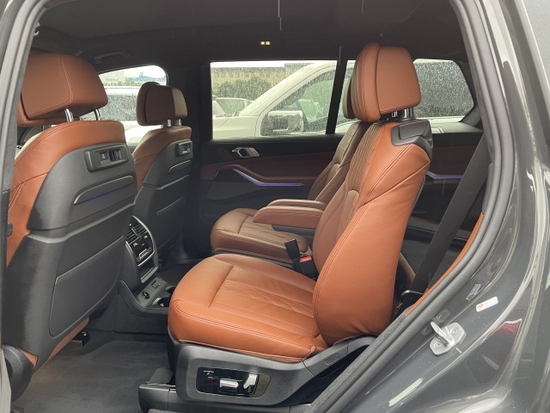21款加版宝马X7 (配置|询价) 水泥灰/棕 #G02653 品名英路有京环配置:卓越豪华包 M运动包 六座包 液晶钥匙 22寸V型轮毂 水泥灰特殊金属漆 棕色美利奴真皮座椅。配置包详解卓越豪华包(电吸门,二排遮阳帘,冷热杯架,抬头显示,前排舒适座椅,旅行舒适系统,自动5区空调,带360全景影像的泊车辅助系统,美利奴真皮座椅,无烟煤Alcantara翻毛皮车顶,星空顶,香氛系统带空气净化,前排座椅按摩,前排座椅通风,蓝色激光大灯,真皮仪表台及真皮门板,水晶档把,专业驾驶员辅助系统,车道保持辅助,限速识别辅助,变道盲区预警,紧急停靠辅助,交通拥堵辅助,主动巡航控制,雷测)M运动包(M运动套件,M运动刹车,M运动排气系统,M空气动力学组件,M运动方向盘,无烟煤Alcantara翻毛皮车顶,黑色铝制车顶行李架,黑色高光装饰条)标准配置:哈曼卡顿音响,自适应双轴空气悬架(底盘升降),无钥匙进入(所有车门,行李箱盖),脚感电尾门,后视摄像头,铝制行李架,卓越风格套件,全景天窗,智能感应氛围灯(带迎宾光毯),运动座椅,腰部支撑,隐私防晒玻璃,黑色无烟煤车顶,前后座椅加热,胎压监测,多功能运动型真皮方向盘,自动四区空调,第三排座位,自适应全LED大灯,LED雾灯,远光灯自动控制,主动保护,驾驶辅助功能,Sirius XM (配置|询价)卫星广播,智能紧急呼叫,Apple CarPlay,带无线充电的扩展智能手机连接,无线热点,交叉路口警报,带有紧急制动的碰撞警告,车道偏离预警,丝绒脚垫,舒适加热套装(方向盘加热,前排座椅加热及门边扶手和中控扶手加热),远程发动机启动(手机软件启动),后排行李箱包(包括行李箱卷帘,储物网,拉紧带和柔性行李网)。