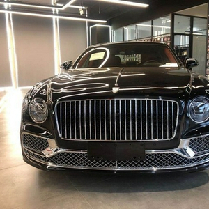 来到侧面,可以看到宾利飞驰 (配置|询价)的车身极为修长,并且采用分段式的腰线设计,且在车身下方添加包围式银色镀铬饰条,使得整车看上去大气又稳重。新一代飞驰配备了21英寸的超大轮毂,并提供选配两款22英寸的Mulliner独家定制轮毂。