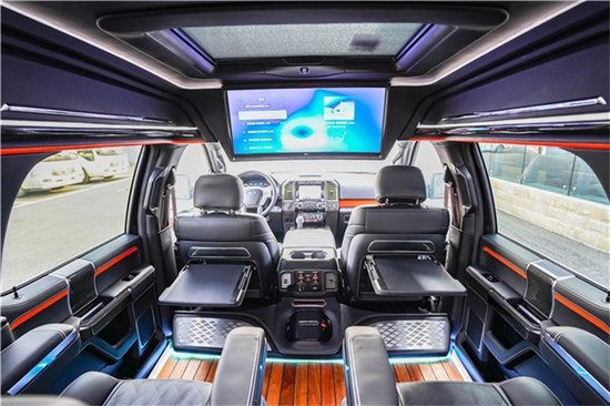 原装进口底盘,车身采用航空铝材无缝焊接,最新的激光技术,统筹美观战争安。搭载3.5TT双涡轮增压,V6缸,新型EcoBoost美式发起机,最大牵引力4858公斤,10速手自一体变速箱,兼具越野车稳定耐用的强悍性能和商务车多功用温馨的驾驶体验。福特F150勇猛者SUV以美国进口的福特F150为原型车,精工打造,通过后尾箱与车体的连接,形成与车身稳固的一体式车厢,同时在原有五座的基础上,加装第三排真皮座椅,完美融汇成福特F150勇猛者。福特F150勇猛者SUV在保留其原型车强悍性能的同时合理利用尾箱空间,将其打造成为一个大型豪华舒适的7座型SUV。