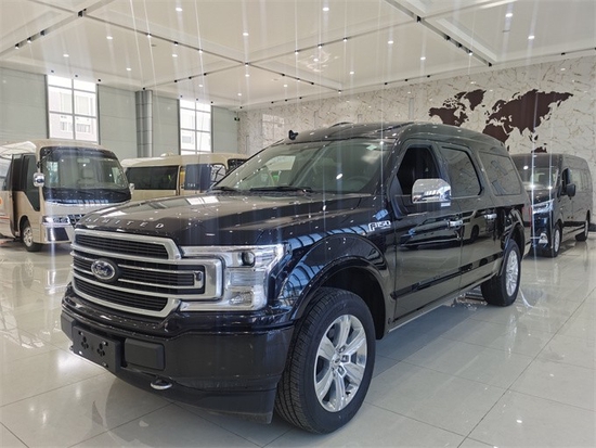 福特F150勇猛者;底盘公告也升级为了商务车公告,不再有皮卡的强制报废的限制,并且可以进入市区;外观方面采用了银色与黑色的双拼设计质感十足,前脸采用霸气的哑光中网,搭配两侧的疝气大灯,线条直硬朗,硬实大气。彰显了其霸气狂野的气质。整车尺寸: 5.907米、宽度2.08米,高度2.16米;3.5TT双涡轮增压10速手自一体变速箱,最大可爆发381马力为我们提供超强的动力,同时内部空间也是十分宽阔的。