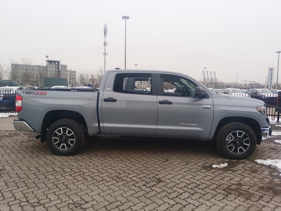 21款丰田坦途SR5TRD版皮卡的车头前脸造型上更加硬朗,粗壮的横幅格栅展现出极其坚实的力量感,宽大硬朗的车身,粗犷有力,凸显美国车的风范,前脸明显外张的挡泥板以及前突的坚固格栅尽现强悍风格。