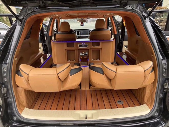 汉兰达 (配置|询价)改装座椅、汉兰达改装内饰升级报价及改装方案,汉兰达座椅改装一般都是7座改4座,将后两派座椅拆除,换装航空座椅、加装吧台和铺上地板舒适度和空间都会有所提升。