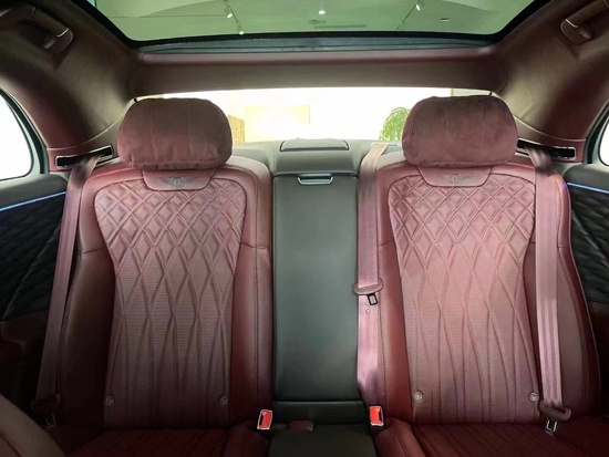 22款宾利飞驰触控屏的设计非常人性化,将多媒体、空调、座椅、氛围灯、遮阳帘、天窗等控制功能全部集成在内,该屏幕可取出支持无线控制,这样后排老板在使用上就非常便利了后排座椅与前排座椅材质相同,同样加入了特殊纹路和菱形图案的装饰和LOGO印花。功能,支持前后、靠背电动调节,配备有加热、通风和按摩功能,调节按键被布置在门板处,使用顺手。前排座椅腿部支撑可以延长。