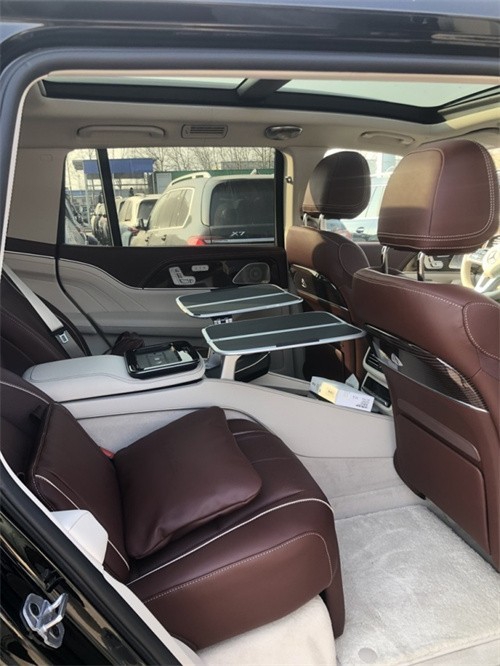 迈巴赫GLS600新车提供四座和五座两种布局,其中四座车型第二排独立座椅相比普通版GLS更加靠后,并且带有巨大的腿拖,其后排座椅最大倾斜角度大43.5度,后排腿部空间最大达1.34米。中央由冰箱、控制台、储物空间和手机无线充电台等进行贯穿,呈现出类似于迈巴赫S级一样的头等舱设计