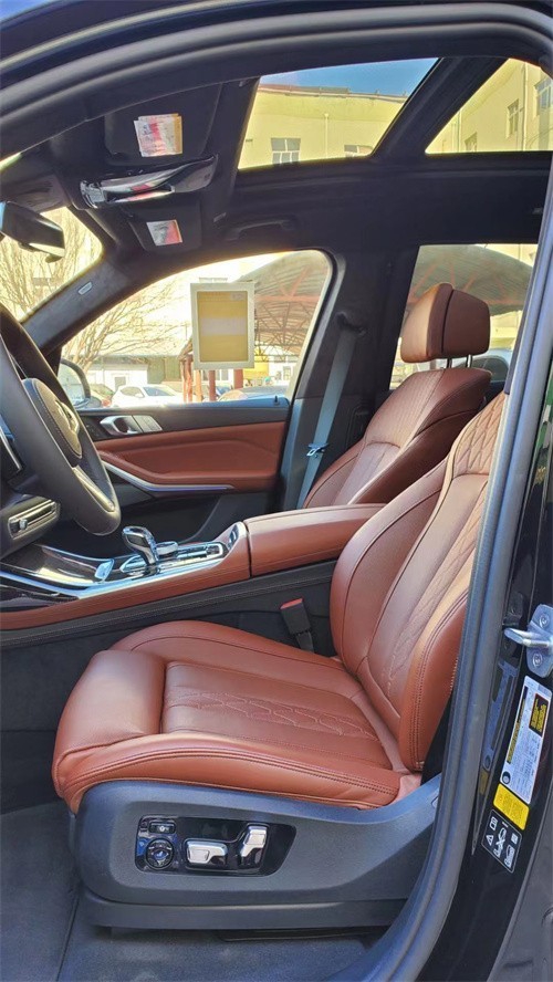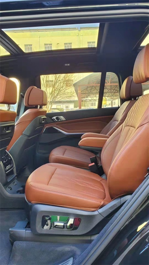 全新宝马X7的内饰设计更是让我们眼前一亮。全新的家族式内饰设计氛围的加入让这款旗舰车型既有豪华气质又突出了科技感。略微偏向驾驶员的中控台诠释了以驾驶员为中心的设计原则。全液晶仪表盘以及12.3英寸的中控大屏均提升了内饰的科技感。大量皮质包裹以及金属材质、水晶档杆、钢琴漆的加持都让内饰的豪华得到了极致体现。