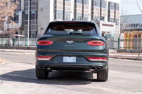 22款宾利添越车尾部分,新款添越使用了宾利最新家族式的尾部设计,整体看上去十分简洁、椭圆形尾灯犹如两颗珠宝,十分璀璨。双边共四出的排气,标志着新款宾利添越依然有着十分强悍的性能。