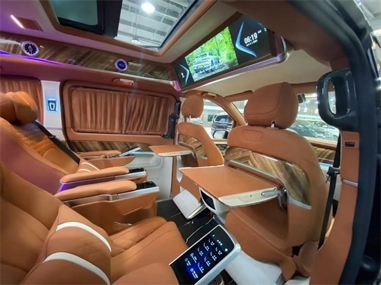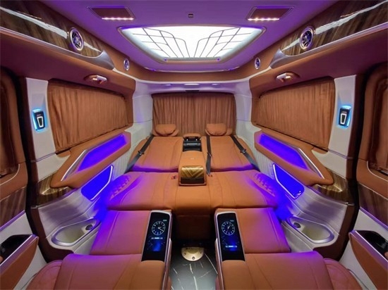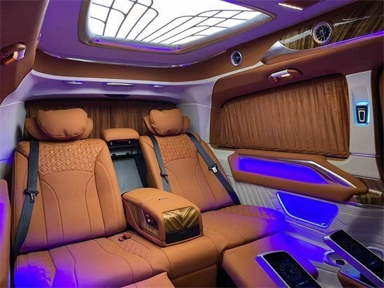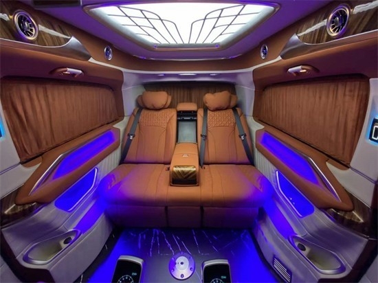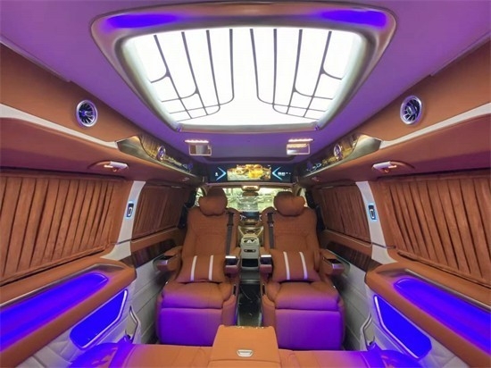 奔驰V260L改装商务车第二排航空座椅为带电动、加热、按摩、通风功能的航空级首长席,可沿着地面上滑轨实现一键电动式前后滑动,对于这种智能化的乘坐体验,是原厂车型笨拙的手动拖拽模式所望尘莫及的。这款车还配备七色氛围灯,让您的旅途更加惬意。