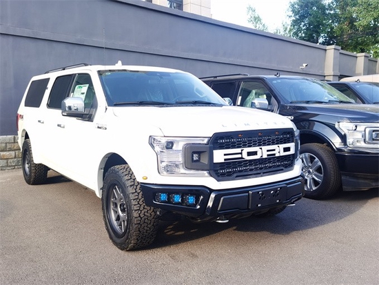 福特F150勇猛者;底盘公告也升级为了商务车公告,不再有皮卡的强制报废的限制,并且可以进入市区;外观方面采用了银色与黑色的双拼设计质感十足,前脸采用霸气的哑光中网,搭配两侧的疝气大灯,线条直硬朗,硬实大气。彰显了其霸气狂野的气质。整车尺寸: 5.907米、宽度2.08米,高度2.16米;3.5TT双涡轮增压10速手自一体变速箱,最大可爆发381马力为我们提供超强的动力,同时内部空间也是十分宽阔的。