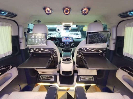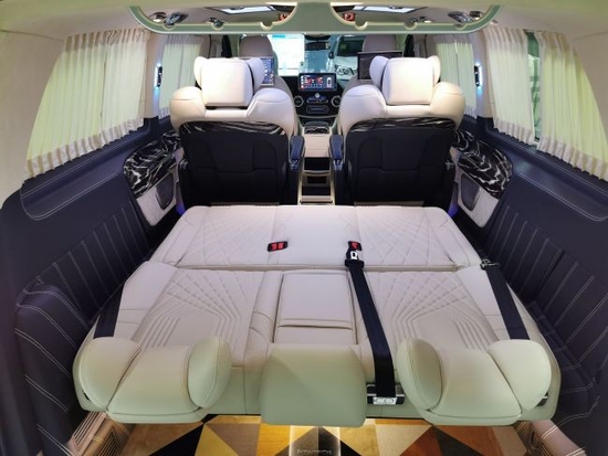 奔驰威霆7座商务车简约版改装后舱,立刻就会被它的豪华绚丽而征服,整车环保真皮包裹,高光地板铺设,豪华感无处不在。