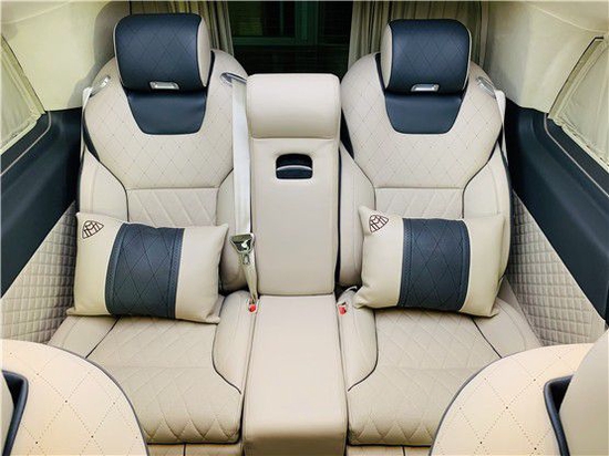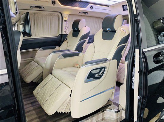 奔驰V260L高顶版的座椅采用飞机头等舱级别座椅 按照亚洲人的体型做出了相应的设计 座椅整体采用打孔Nappa真皮包裹 与舒适性填充物匹配 给予最高的乘坐舒适感 座椅支持多向电动调节、座椅按摩 通风/加热、腰部支撑调节、腿托 不管是躺着还是坐着;随时享受不同的乘坐体验