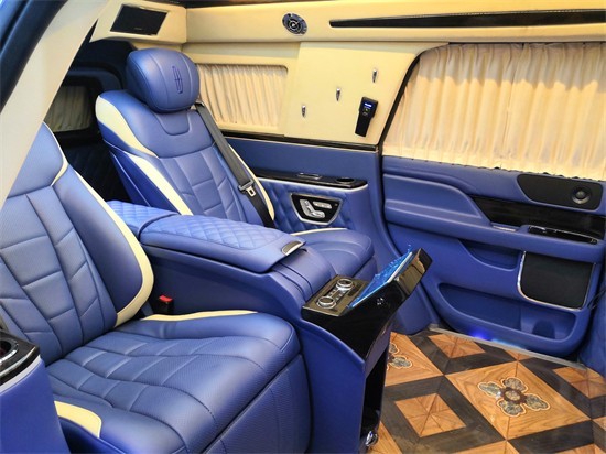 林肯领袖一号商务车配置:车长5.98米、360度环影、雾灯、LED大灯、体感电尾门、发光星标、防眩后视镜、带转向加热后视镜、电动合金踏板、隐私玻璃,加热/通风前座椅、高级真皮座椅、驾驶/副驾驶电动腰部支撑、前后驻车雷达、导航、胎压监测、拖车套件、三区空调、电动踏板、后藏VIP总统级商务座椅、12向电动调节包含头枕自动升降、座椅通风、座椅加热、后藏独立空调系统、多点自动按摩、全车德国Napa真皮、高级美国进口游艇PVC高度耐磨防滑地板、40寸超大屏高清电视(自动升降)。