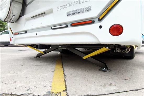 房车底部标配进口电动驻车支腿,剪型的交叉驻车支腿带有自动调平功能,让您在车辆驻车的过程中更安全稳定。