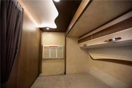 车厢尾部,有张2210X1200mm双人床,从而使得整车能够容纳5-6人同时休息,是大空间、大容量的经典设计。