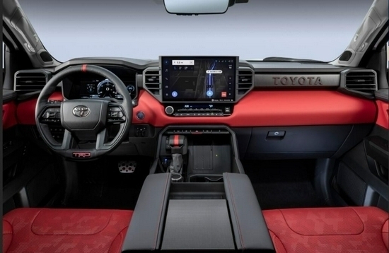 丰田坦途五个小仪表给出了司机应该注意的技术参数,转速表、时速表、油量表、水温表、电池/机油表依次排列,数据显示清晰明了,中控台科技感十足,三辐方向盘延续了家族设计理念。金属、木材、皮革等多材料营造了相当豪华的视觉感受,丰田坦途内饰简洁大方依旧突出了实用特点,室内色彩的精致搭配,让整个内部空间既充满质感又倍感时尚。