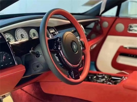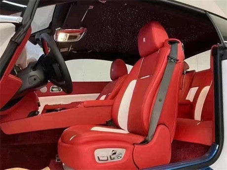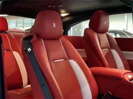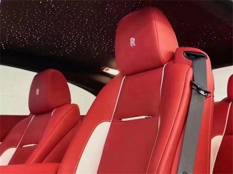 劳斯莱斯魅影 极地白/穆罗杰红 现车 配置: 舒适进入 流星顶 前排座椅通风 座椅滚边 缝线 RR头枕刺绣 双色方向盘 定制内饰。