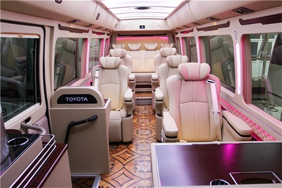 丰田考斯特原车所配备的织物座椅不能够满足考斯特作为接待车的档次需求,所以丰田考斯特在改装之时可以根据客户的需要设置真皮座椅,360度可旋转的航空座椅,以及原装进口的埃尔法座椅,在带给我们舒适的同时又让丰田考斯特改装商务车在内饰的 设计上展示出十足的档次感。