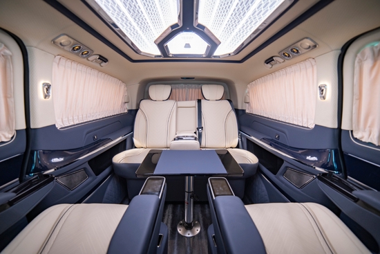 这款奔驰威霆7座商务车的车窗还特意设计隐私窗帘,给老板一个更安全私密的环境,后备厢空间也格外宽敞。