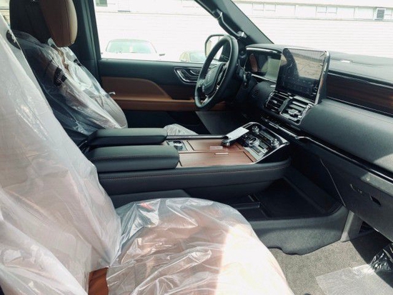 21款林肯领航员的内饰非常奢华,多功能方向盘,中控台的造型与宽大的车身相呼应,新车全部真皮包裹座椅,内饰采用桃木搭配设计,高贵典雅,加高加大的车身除了增加内部空间外,还给人营造一种尊贵典雅的感觉。最新林肯领航员新车采用了2+2+3的座椅布局,第二排采用了两个独立座椅,座椅内侧均配有扶手,舒适度超强。