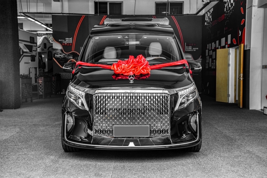 奔驰圣母峰巅峰版,标志性的圣殿星幕格栅包围,繁星闪耀,庄严大气,前脸九阶登云格栅,寓意层层递进,步步高升,一往无前;奔驰圣母峰商务车定制凌风展翼升降立标,寓意攀顶峰之上,展翅翱翔,唯我独尊,傲视群雄