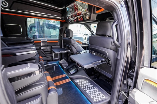 中规版福特F150勇猛者SUV以美国进口的福特F150为原型车,精工打造,通过后尾箱与车体的连接,形成与车身稳固的一体式车厢,上海元素汽车工厂事业部同时在原有五座的基础上,加装第三排真皮座椅,在保留其原型车强悍性能的同时合理利用尾箱空间,将其打造成为一个大型豪华舒适的7座型SUV。
