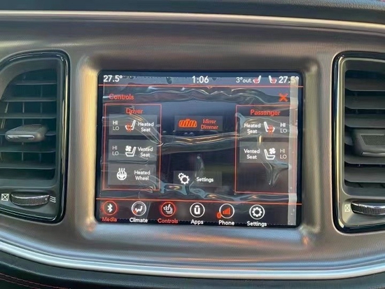 内饰方面:21款道奇挑战者的内饰变化不大,新车采用了新的SRT专属方向盘,中控面板的布局很简洁,除了 常规的操作面板外再也看不到繁琐的设置。中控面板上最大的亮点是大尺寸液晶屏,多媒体系统集合的功能非常丰富。