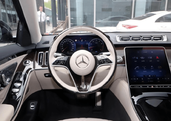 迈巴赫S的车内设计基本上延续了全新一代S级的数字豪华设计。直瀑式的12.8寸大屏幕为OLED材质,而不是传统的LCD,这样带来的显示亮度和色彩饱和度都更高。12.3寸全液晶仪表盘看上去无奇,但其实是裸眼3D效果,同时配合第二代MBUX车机,整个人机交互系统全部取消了物理按键,就像在大号的iPad Pro上操作一样。