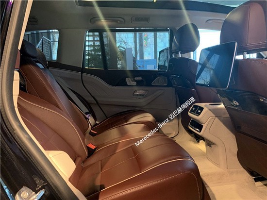 内饰色彩可选择黑色或红木棕色/玛奇朵米色组合,全新GLS (配置|询价)480 4MATIC礼尚版还可选装专属的水晶白色/珠光银灰色内饰,更显优雅气质。全新梅赛德斯-迈巴赫GLS SUV标配双12.3英寸高清显示屏,在车辆启动后,显示屏上会出现“Maybach”标识和专属配色动画的欢迎界面。驾驶者还可根据个人偏好选择不同的界面显示风格,包括专属的“迈巴赫经典”风格,界面的整体格调会变为深蓝色,数字、指针和表圈均为玫瑰金色。