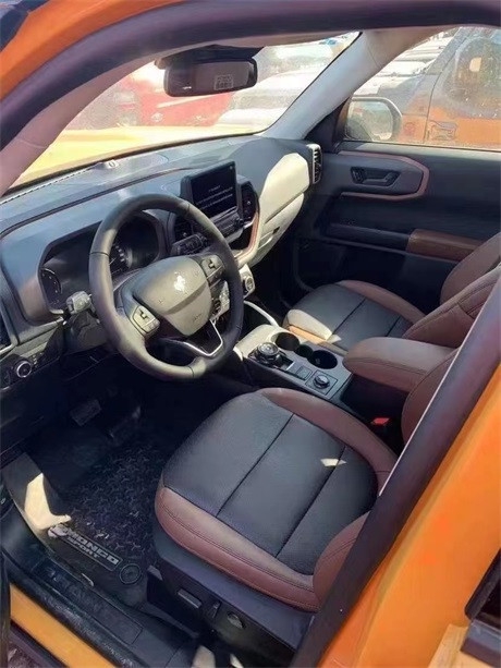 2021款福特烈马车身线条都是平直硬朗的,显得四四方方,猛地一看有点类似牧马人 (配置|询价)。内饰的表现有点朴素,不是那么精致,毕竟这是主打越野的车型,没有必要追求奢华感。但内部的大液晶表盘和大中控屏,还是能加分的。