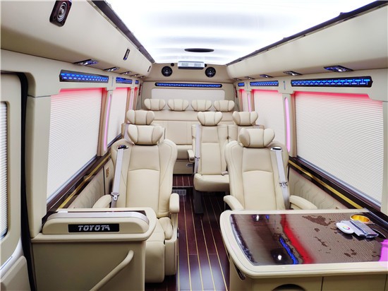 作为旅行的房车,丰田考斯特改装商务车更加注重为乘驾人员提供舒适的乘车环境,我们虽然不能完完全全的消除您旅行中的疲惫和烦忧,但是我们却在尽自己最大的努力您拥有更加舒适的旅行。我们在座椅的设计上,根据人们坐车的习惯,特意选择了符合人体曲线的座椅设置,在增加腰部支撑的同时,也更加注重对颈部的支撑与安放。座椅的头部,我们才用双向支撑的座椅结构,无论您是想透过场外看风景,还是希望静静的坐在车里思考人生,都可以给您的身体一个完美的状态,让您的旅途忘记疲劳,享受愉悦。