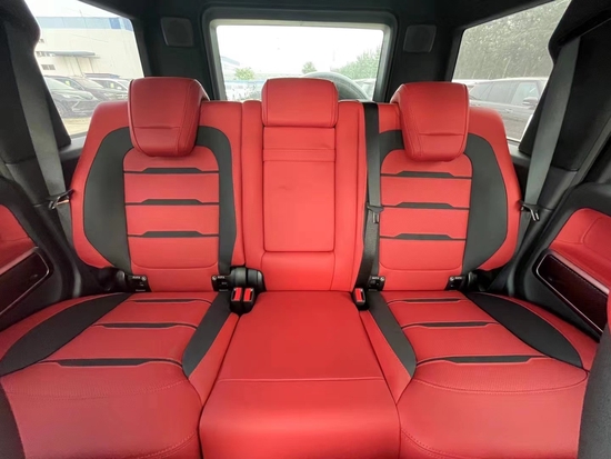 22款奔驰G作为奔驰旗下最强悍的SUV,一直以来都是大多数男人的梦,但是价格上的高昂也只能让大多数的人看看眼瘾了!图中这款车就是全新的22款奔驰“G63”。全新红色的配色更是让这部车气场十足!正面上的进气格栅依旧是奔驰G家族式的风格,简单但不失霸气,两侧的炮眼大灯基本上秒杀统计人的任何车辆,而这组大灯则是由银色的日间行车灯所包围,霸气的前包围也彰显出了这部车的硬派感。