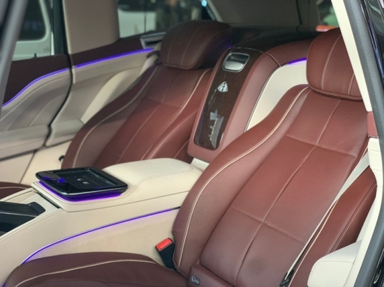 奔驰迈巴赫GLS600提供四座布局,四座车型第二排独立座椅相比普通版GLS更加靠后,并且带有巨大的腿拖,其后排座椅最大倾斜角度大43.5度,后排腿部空间最大达1.34米。中央由冰箱、控制台、储物空间和手机无线充电台等进行贯穿,呈现出类似于迈巴赫S级(配置|询价)一样的头等舱设计。