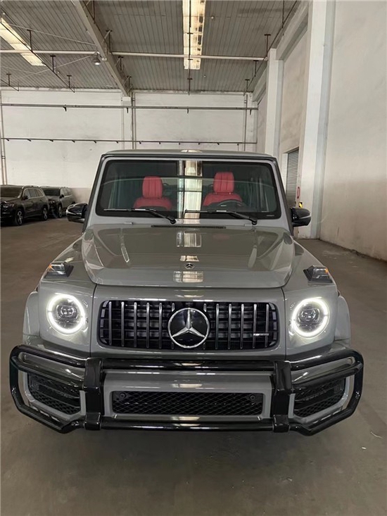 21款奔驰G63 (配置|询价)带有镀铬垂直格栅条的散热饰板打造出别具一格的前脸造型。AMG 车身风格组件等装备的点缀进一步提升了质感,让车辆前端更富表现力。并且标配夜色组件包括高光黑色车轮、颜色稍暗的照明系统、喷涂曜岩黑色漆的精选附加部件以及深色后车窗,令车辆更具个性气质。