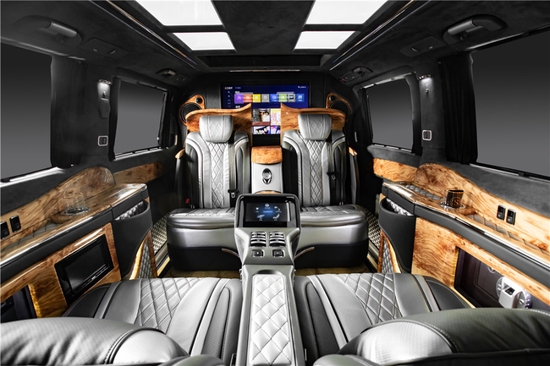 2022款奔驰V260改装浩瀚星空系列——夜空细节配置:地板采用进口珍稀橄榄树瘤航空铝制地板,隐藏式指纹识别点子保险柜,220V电源接口,USB以及HDMI多功能连接口,建伍主机,隐藏式苹果IPAD办公娱乐系统,前后舱通话器,隐藏式智能小桌板,高档电动调节对开天鹅绒窗帘,炫酷的星空顶灯。