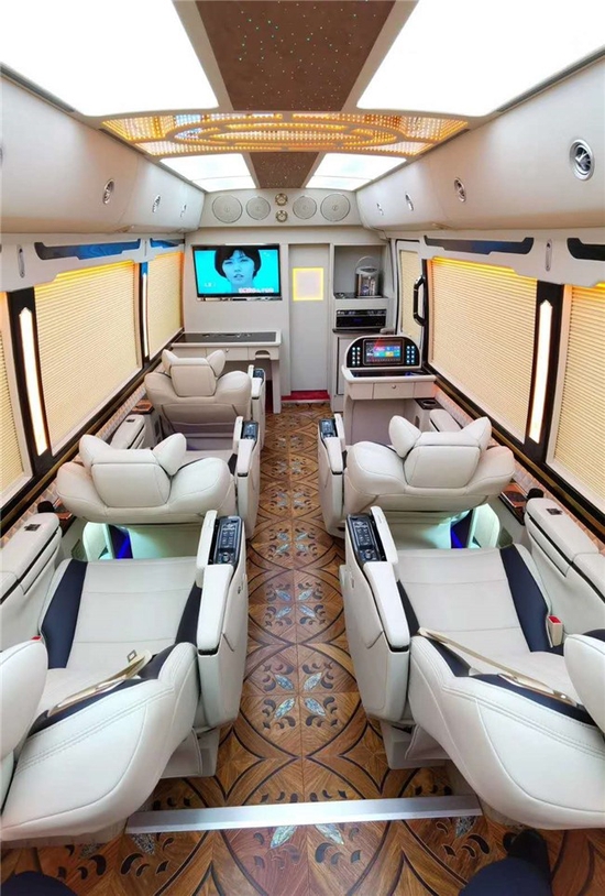 考斯特商务车改装销售注重实用性的设计,作为一款商务车,我们在内饰上追求舒适和便捷。高档的办公桌,技能显示尊贵的身份提升商务车的档次,更能让我们在旅途中又舒适的办公环境。真皮航空座椅,360度可旋转的首长席,方便您在旅途过程的临时会议,对于乘车人员,我们提供舒宽敞的乘车环境,座椅舒适柔软,更可以增加可以自动加热,调控角度的装饰,为您减轻旅途的疲劳之感。我们以最贴心的设置,满足您的旅途所需。
