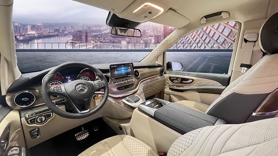 新V级继承了梅赛德斯-奔驰家族全新的设计语言。内饰风格与c系列非常相似,但却是全新的。与c系列的T型中控台不同,驾驶台的空间对于V级的MPV来说相当充足。用银色装饰条巧妙地分隔了奔驰的指挥系统。在传统的布局方法中,这应该是变速器档位杆的位置