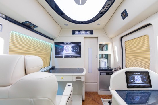 丰田考斯特11座改装商务车在内饰的改装上尽显时尚元素,考斯特改装11座商务车在座椅的设计上更加注重舒适性与高贵感的追求,360度可旋转的航空座椅,配备高档办公桌,方便了我们的办公以及娱乐活动。丰田考斯特11座改装商务车同样可以采用全进口的埃尔法 (配置|询价)座椅,并且配备有通风加热以及电动脚托等等设备。为我们的旅行提供舒适的环境,缓解旅行过程中的疲劳。丰田考斯特往往象征着大,特点是空间宽敞、做工精致、配置齐全,而且可以多人同行,相对来说也比较低调,丰田考斯特选用了高端音响系统,按照家庭影院音响系统设计,专注于杜绝噪音和震动构筑出合适高保真音响系统的完美环境,支持多声道环绕声效果,给乘客带来视觉与听觉的冲击效果。