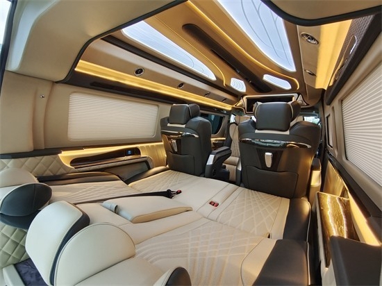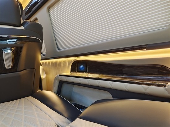 独特设计的哥伦比亚风格顶灯,配有电动窗帘,法国劲浪音响,高级游艇柚木地板,一体式铝踏板带丰田Logo,无线电充,可拆卸行政桌板,埃尔法独立座椅,通风加热按摩