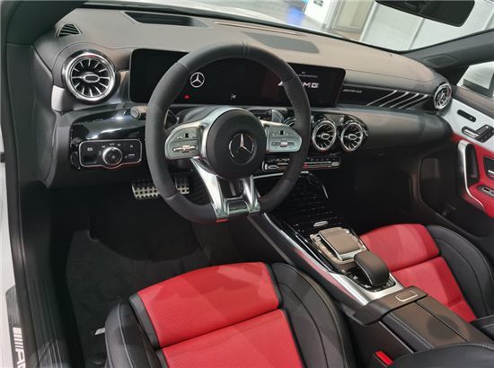 新车整体设计与全新CL .A级基本保持一致, 但细节方面有所不同。车辆内部增加了大量AMG元素,由ARTICO皮革和DINAMICA微纤维材质覆盖的座椅座椅与平底运动方向盘会一直提醒你,你驾驶的是一台性能车。如果是选择AMG CLA 45 S的车主则可以获得更加令人心动的内饰,象征赛道的黄色装饰条充斥于整个内饰,为驾驶者带来更强的视觉冲击感。