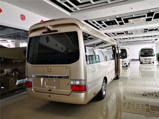 (进口丰田 考斯特)COASTER柯斯达高级汽油车采用2.7L_VVT-i汽油发动机(3TR), 可以通过电子控制保持最佳空燃比,输出功率高达113kW/5200rpm,扭矩达到242Nm/3600-4200rpm,丰田考斯特在排气系统中匹配了O2传感器和三元催化器,使环保方面亦有出色表现,考斯特车身长度为7.005米,身宽度为2.040米,车身高度为2.774米,高大的车身为我们提供了宽敞舒适大的乘驾空间。